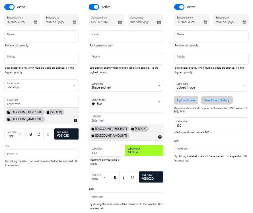 URL - Turn your product labels into interactive calls-to-action by adding a custom URL. This allows you to redirect customers to specific promotion pages, collections, or external links. When a URL is set, clicking anywhere on the label opens the specified page in a new browser tab.