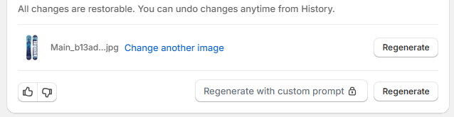 If you're not satisfied with the result, simply click Regenerate or Regenerate with custom prompt to try again. Save changes to publish them.