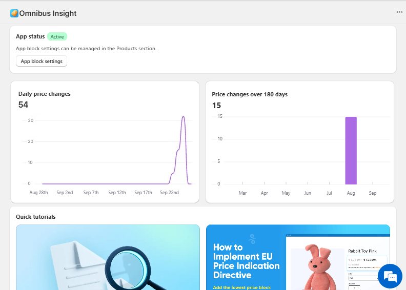 View the dashboard of daily and monthly product price changes. - Adding the lowest price block to non-product pages