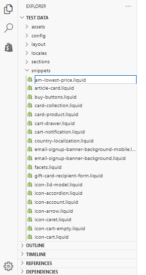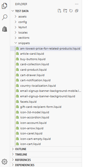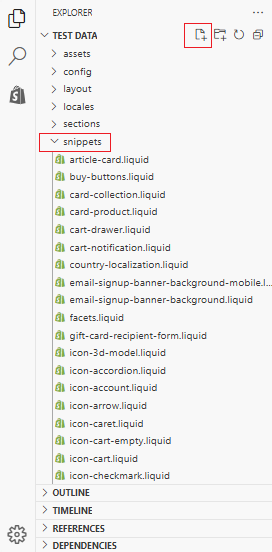 3. In the theme editor sidebar, find and click on the "Snippets" section to expand the list of existing snippet files.