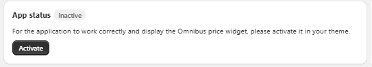 If you did not complete the setup during onboarding, you can activate the Lowest Price block at any time from the app's homepage. On the app's homepage, you will see an "App Status" bar. This bar indicates whether the lowest price block is currently active in your store.