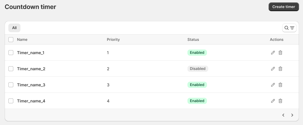 To display timers on your store, you need to activate the countdown timer block in your theme. If it’s not activated, you’ll see a warning at the top of the page